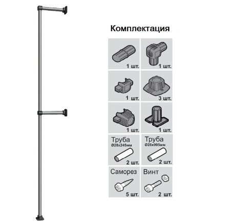 Предназначена для размещения одежды на плечиках. Штанга имеет простую и плавную регулировку по высоте путем ослабления и затяжки винтов на нужной высоте, а ребра жесткости внутри креплений обеспечивают плотную фиксацию на стойке. Допустимая нагрузка до 20кг
