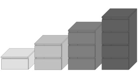 Ящики могут быть от 1 до 4 одним блоком. Высота одного ящика 200мм.