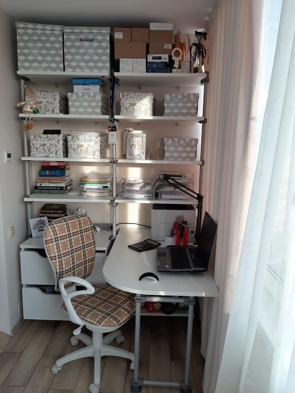 Рабочая зона, расположенная на теплом балконе . Высота потолков 2500, система хранения 2м.