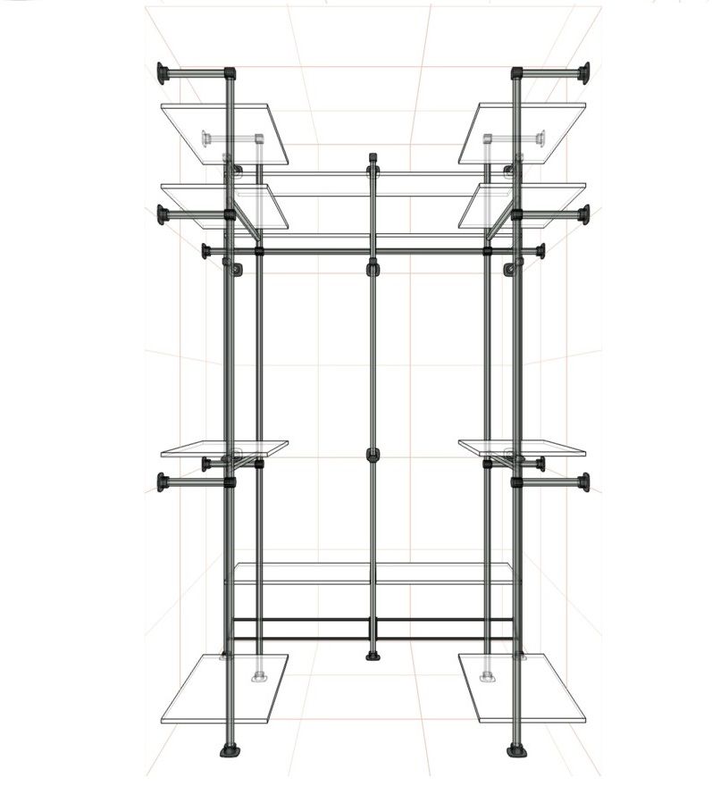 Проект гардеробной в нише за шторой в ширина 1600*глубина 1400* высота 2600